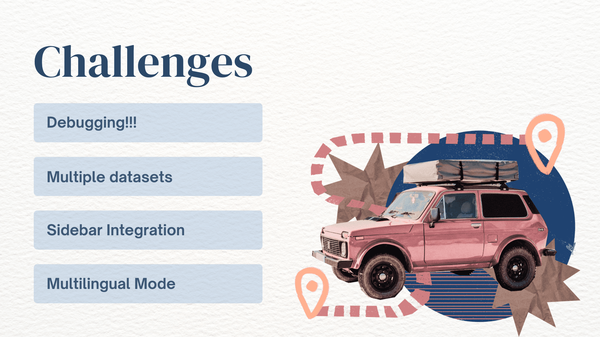 I learnt how critical context and retrieval are to creating useful AI products. I was responsible for implementing semantic search, prompt chaining, and model orchestration so the system could move beyond static answers and generate trip-specific recommendations. This work directly improved the relevance of packing lists and local suggestions, making the product feel intelligent rather than scripted.