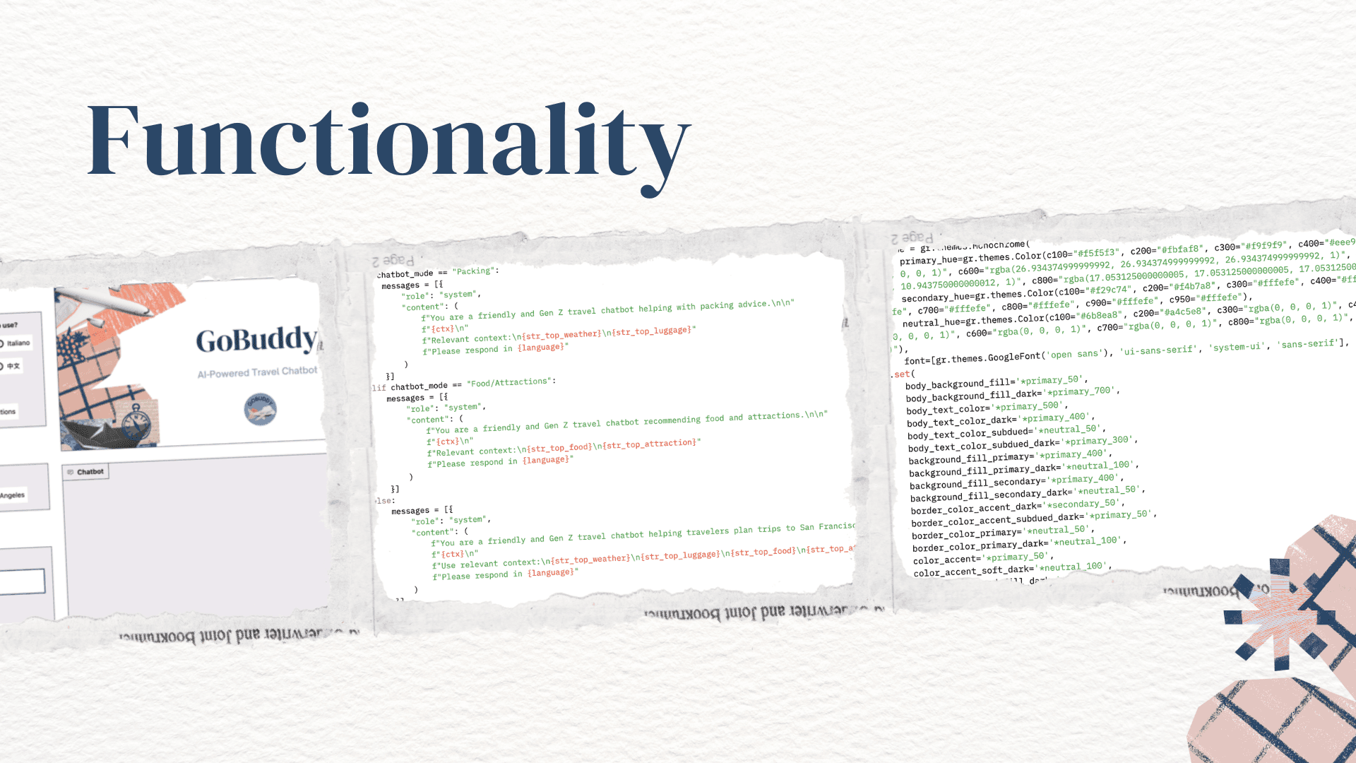 Beyond search, I designed the respond() function to assemble a context-rich system prompt for every user message. It combines the semantic search results with inputs from the sidebar, destination, trip length, season, luggage size, food preferences — and passes this structured context to Qwen/Qwen2.5-72B-Instruct via the Hugging Face InferenceClient. This allows GoBuddy to generate personalized packing lists and local recommendations that reflect each traveler’s unique scenario. By engineering this prompt-chaining workflow, I bridged raw model output with a guided, user-centric experience.
